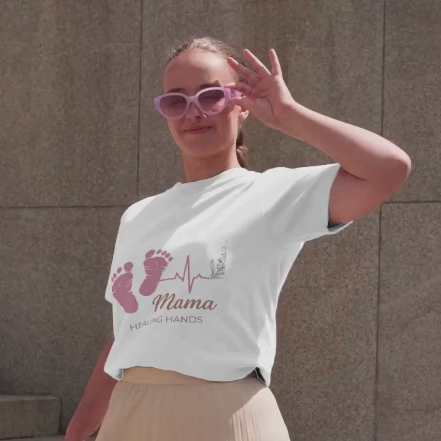 Mama Healing Hands T-Shirt — Baby Footprint & Heartbeat Maternity Tee for Nurse Moms