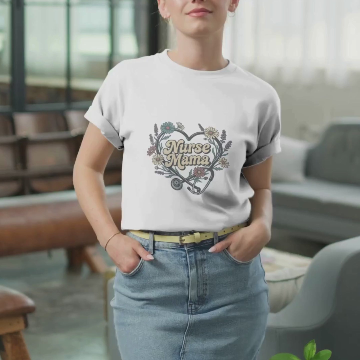 A floral stethoscope tee for the nurse mama who carries clinical skill and natural warmth in equal measure — the one whose presence feels like both a steady hand and a soft place to land. Beautiful design. Meaningful identity. Worn with quiet pride.